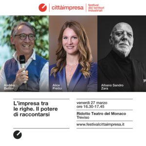 Venerdì 27 marzo alle ore 16:30 presenterò Cosa sarà. Diario di un narratore d’impresa (Post Editori) all’interno del Festival Città Impresa, a Treviso.